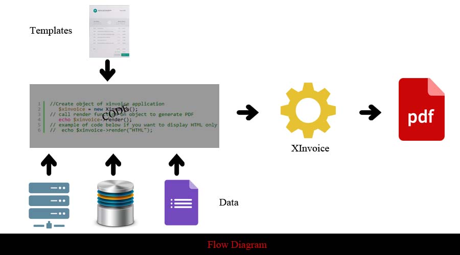 You can easily integrate xInvoice script to your application to generate invoices/reports. You need to include the script file in your application. After this, you can create object of class and run render function to generate pdf.